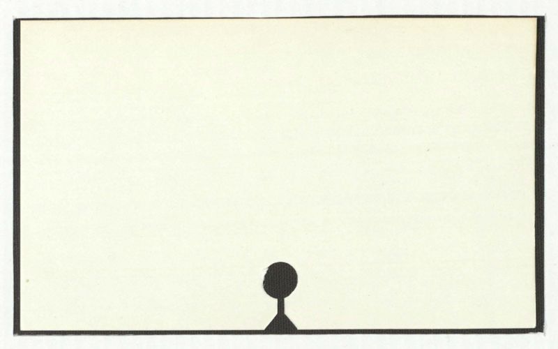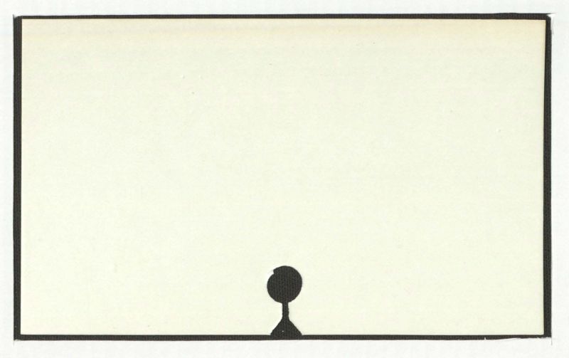 There is no text present in the image. The image consists of a minimalist black border surrounding a light-colored background with a black silhouette of a figure at the bottom.