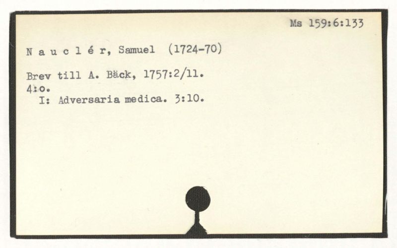 Brev till A. Bäck, 1763:12/4, 8/10.