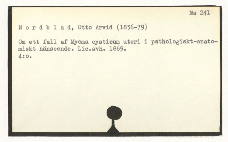 Om ett fall af Myoma cysticum uteri i pathologiskt-anatomiskt hänseende. Lic.avh. 1869.