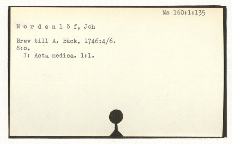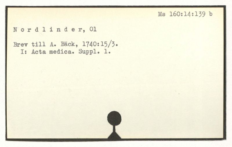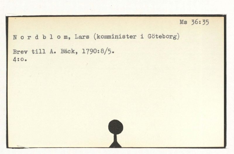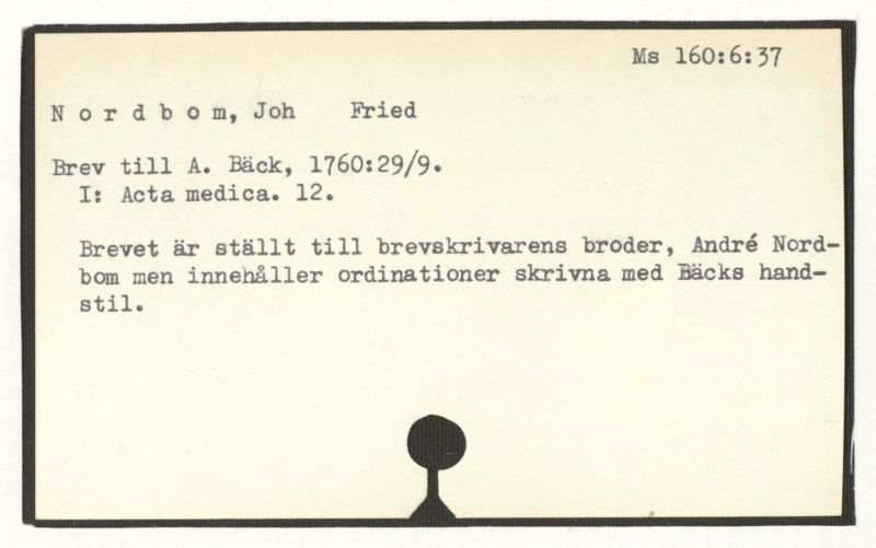 Brevet är stället till brevskrivarens broder, André Nordbom men innehåller ordinationer skrivna med Bäcks handstill.