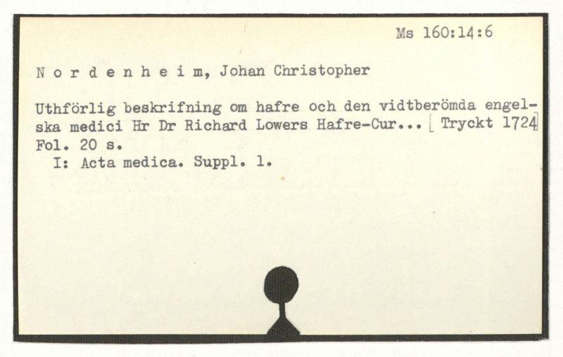 Uthförlig beskrifning om hafre och den vidtberömda engelska medici Hr Dr Richard Lowers Hafre-Cur... [Tryckt 1724] Fol. 20 s.