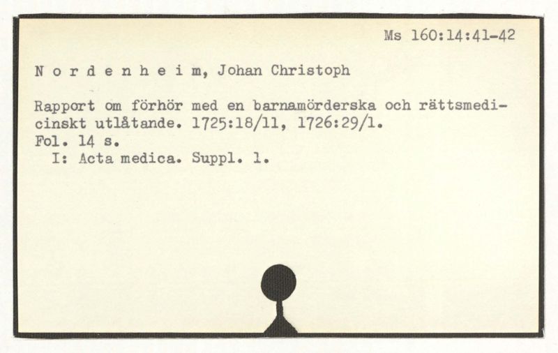 Rapport om förhör med en barnamörderska och rättsmedi-cinskt utlåtande. 1725:18/11, 1726:29/1.