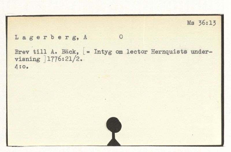 Brev till A. Bäck, [ = Intyg om lector Hernquists undervisning ]1776:21/2.