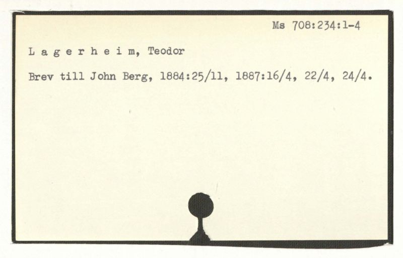 Brev till John Berg, 1884:25/11, 1887:16/4, 22/4, 24/4.