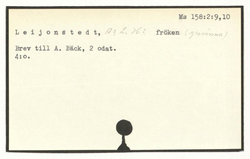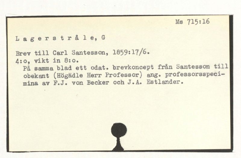På samma blad ett odat. brevkoncept från Santesson till obekant (Högådle Herr Professor) ang. professorsspecimina av F.J. von Becker och J.A. Estlander.