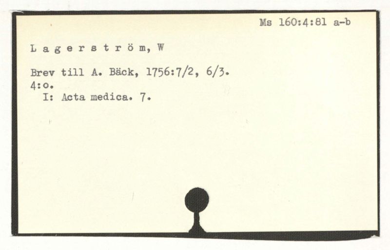 Brev till A. Bäck, 1756:7/2, 6/3.