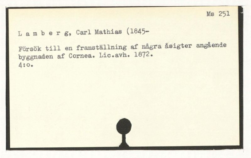 Försök till en framställning af några åsiger angående byggnaden af Cornea. Lic.avh. 1872.