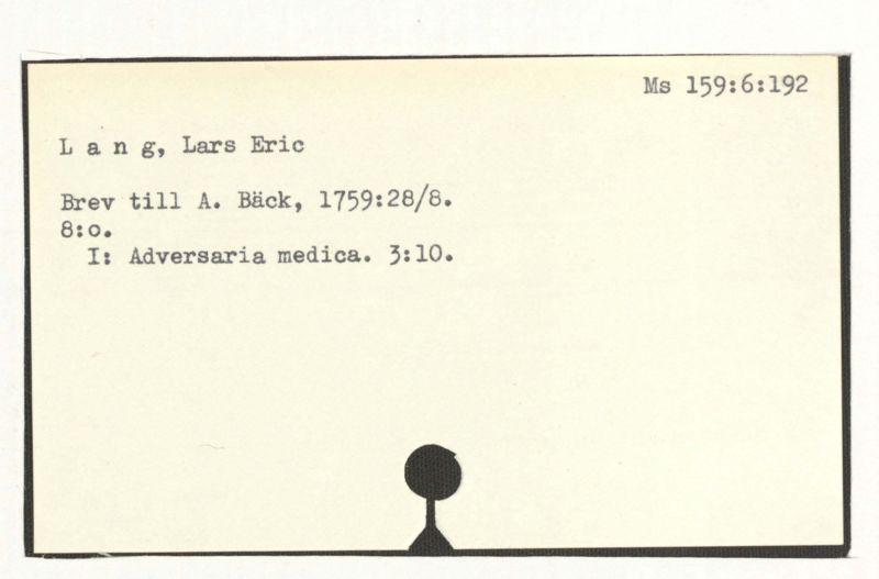 Brev till A. Bäck, 1 odat. [ 1759?]