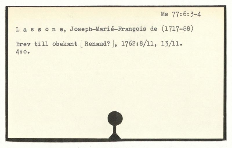Brev till A. Bäck, 1753:3/11, 13/7.