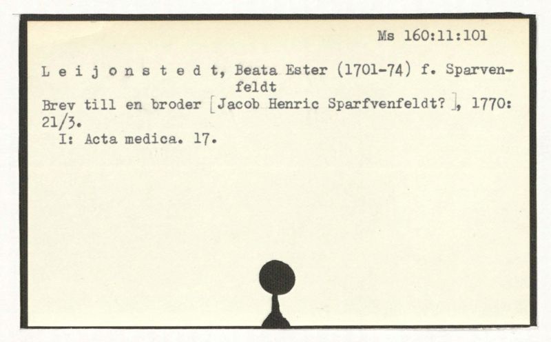 Brev till en broder [Jacob Henrik Sparfvenfeldt?], 1770: 21/3.