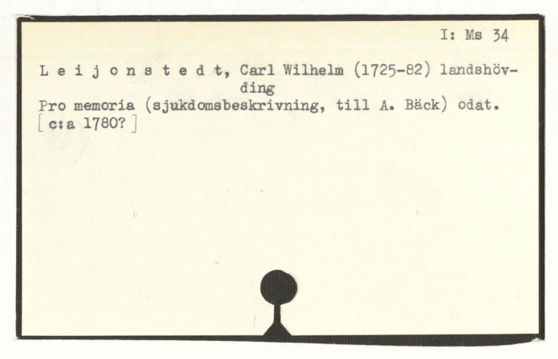 Pro memoria (sjukdomsbeskrivning, till A. Bäck) odat.