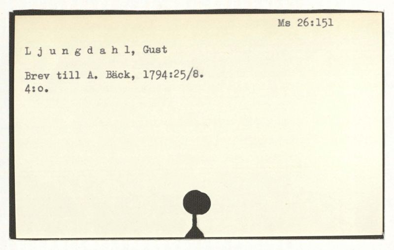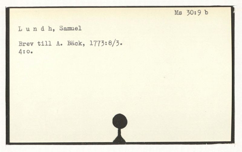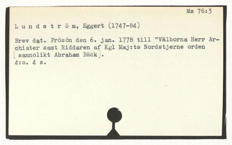 Brev till A. Bäck, 1780:27/10, 1781:21/1, 3 odat. (u.å.: 3/11, 17/4, 19/4).