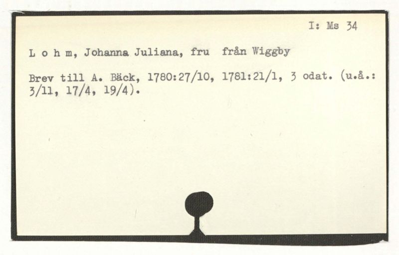 Lohm, Johanna Juliana, fru från Wiggby
