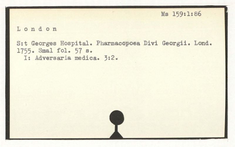 S:t Georges Hospital. Pharmacopoea Divi Georgii. Lond.