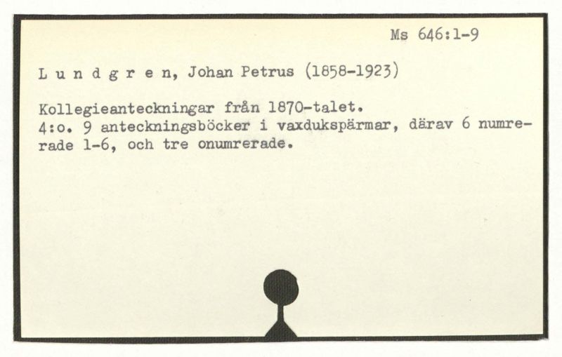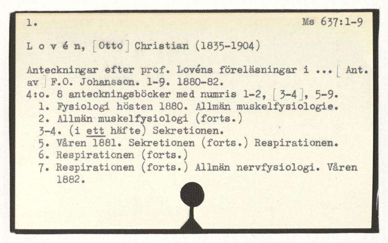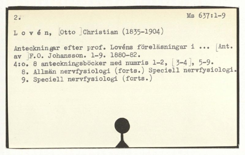 Anteckningar efter prof. Lovén s föreläsningar i ... [Ant. av ] F.O. Johansson. 1-9. 1880-82.