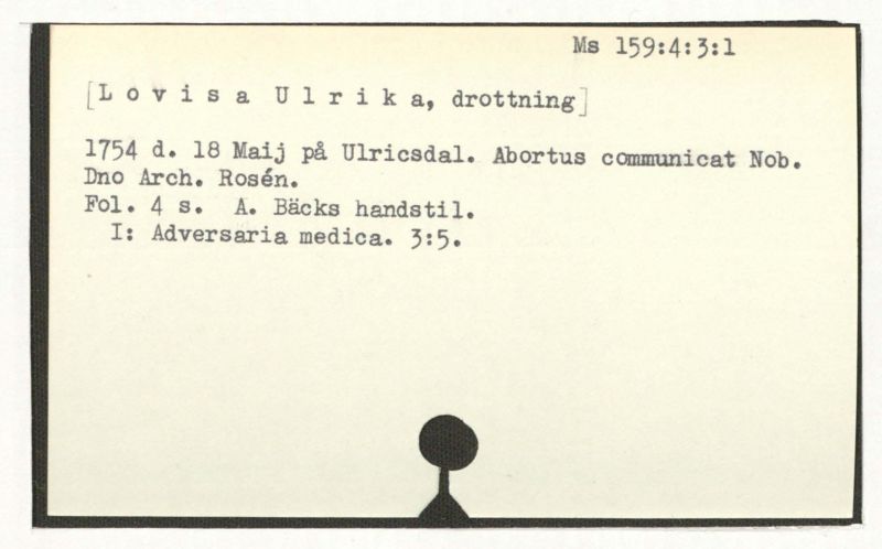 1754 d. 18 Maj på Ulricsdal. Abortus communicat Nob.