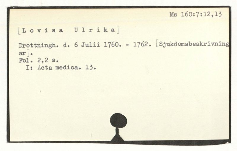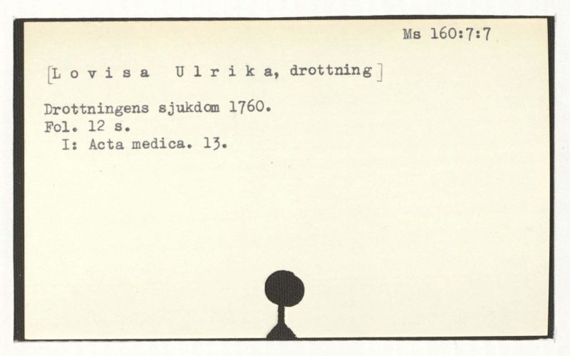 Drottningh. d. 6 Juli 1760. – 1762. [Sjukdomsbeskrivning ar].