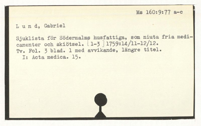 Sjuklista för Södernalms husfattiga, som niuta fria medicamenter och skötsel. [1-3] 1759:14/11-12/12.