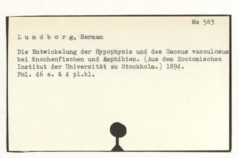 Die Entwicklung der Hypophysis und des Saccus vasculosus bei Knochenfischen und Amphibien. (Aus dem Zootomischen Institut der Universität zu Stockholm.) 1894.