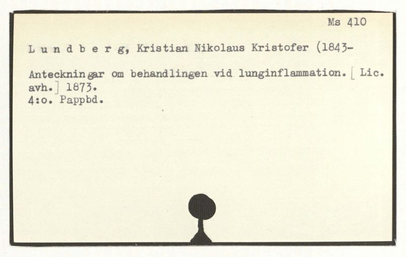 Anteckningar om behandlingen vid lunginflammation. [ Lic. avh. ] 1873.