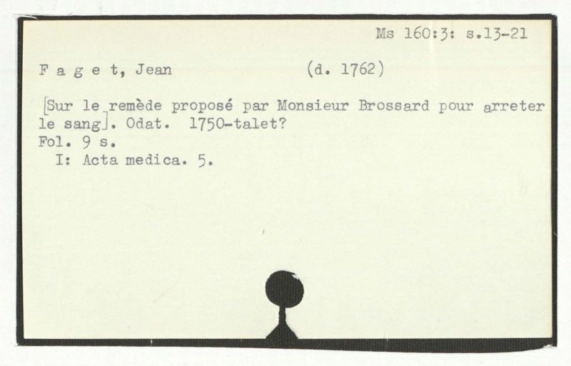 [Sur le remède proposé par Monsieur Brossard pour arreter le sang]. Odat. 1750-talet?