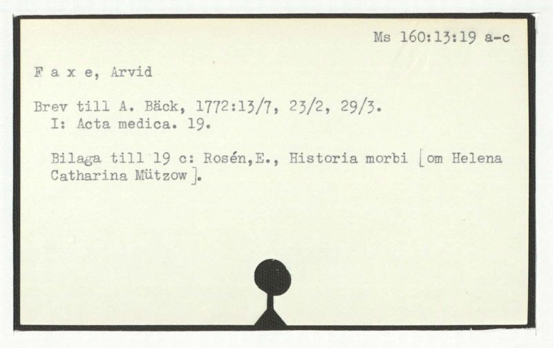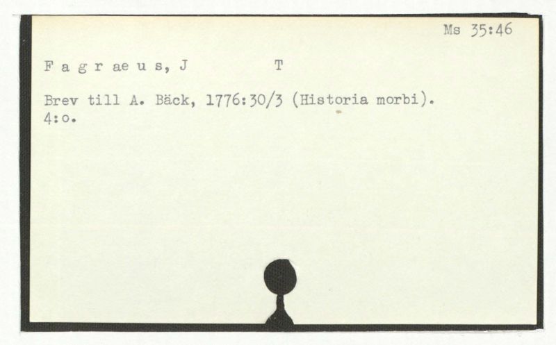 Brev till A. Bäck, 1776:30/3 (Historia morbi).