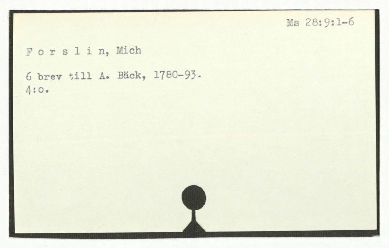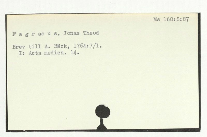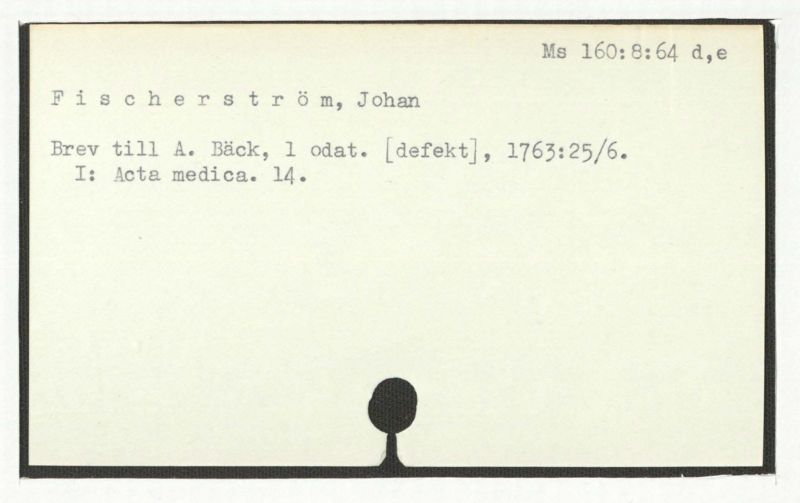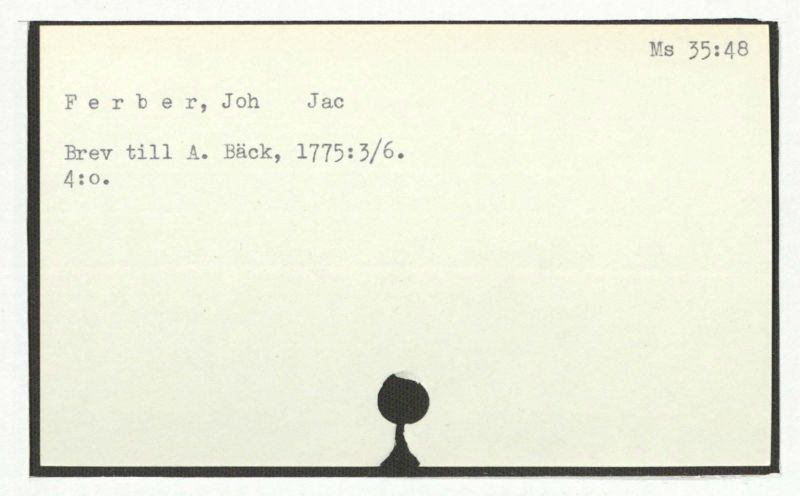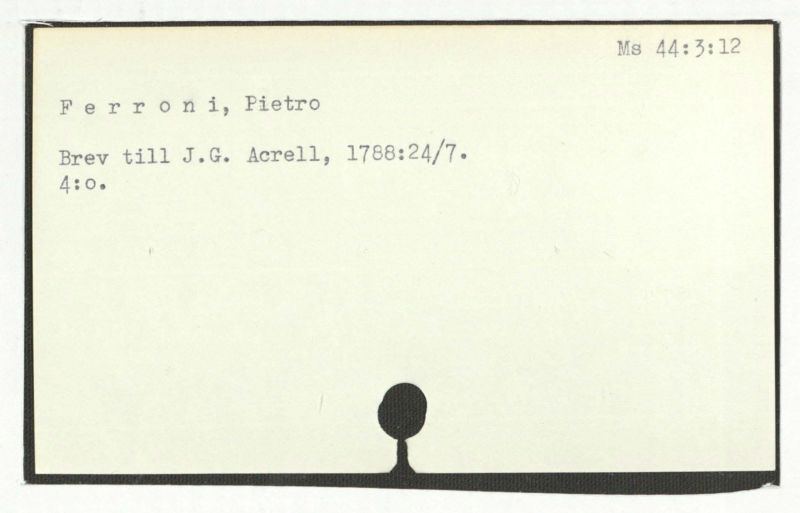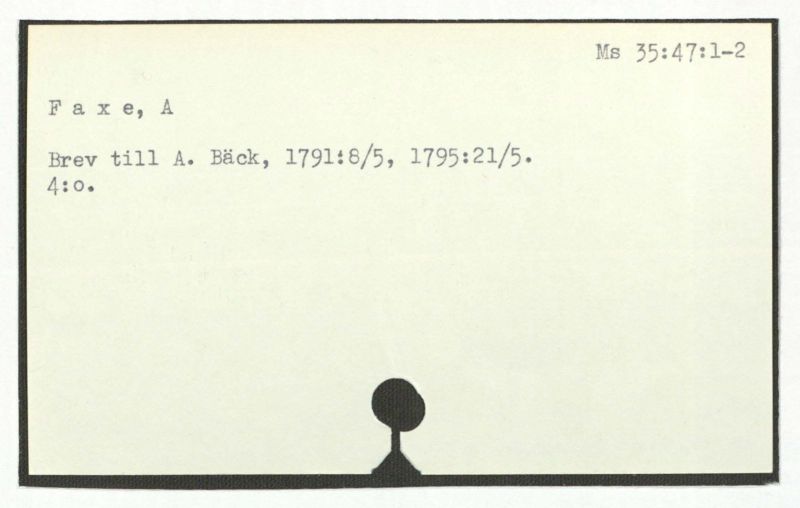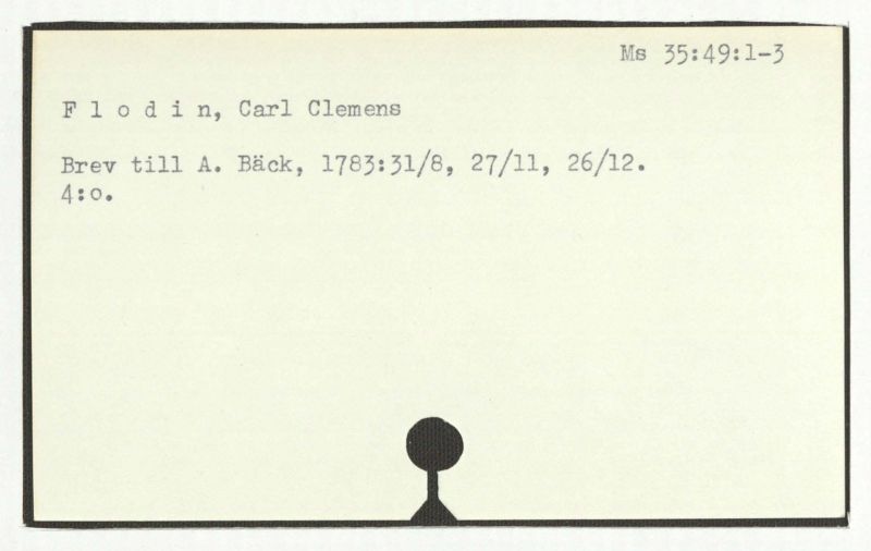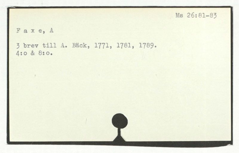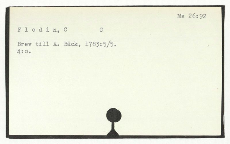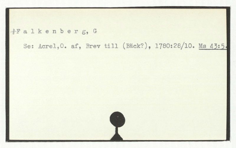 Se: Acrel,0. af, Brev till (Bäck?), 1780:28/10. Ms 43:5