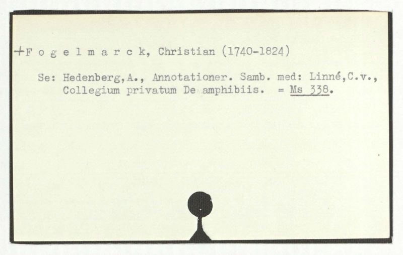 Se: Hedenberg, A., Annotationer. Samb. med: Linné, C.v., Collegium privatum De amphibibus. = Ms 338.