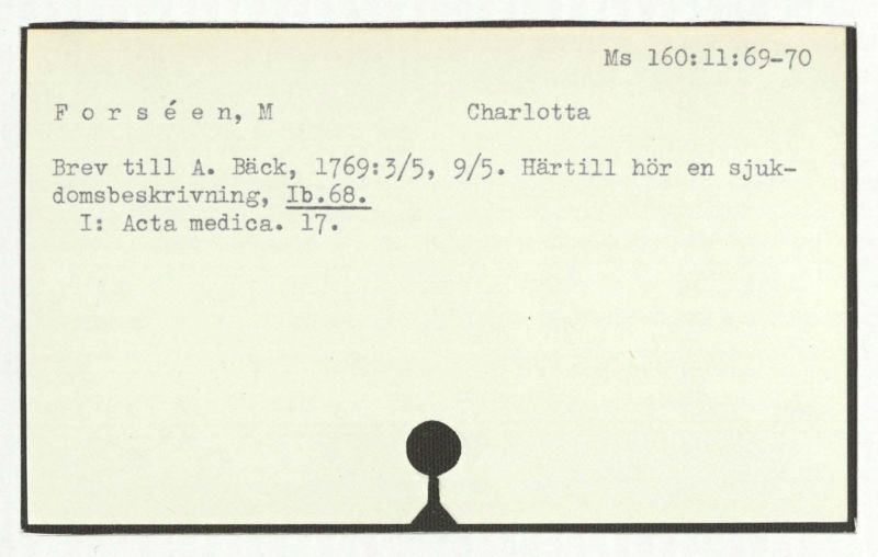 Brev till A. Bäck, 1769:3/5, 9/5. Här tillhör en sjukdomsbeskrivning, Ib.68.