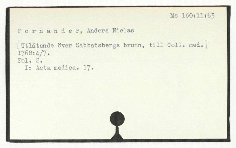 [Utlåtande över Sabbatsbergs brunn, till Coll. med.]