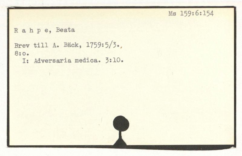 Brev till A. Bäck, 1759:5/3. 8:0.
