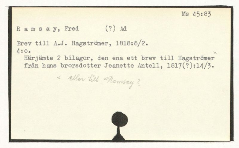 Härjämte 2 bilagor, den ena ett brev till Hagströmer från hans brorsdotter Jeanette Antell, 1817(?):14/3.