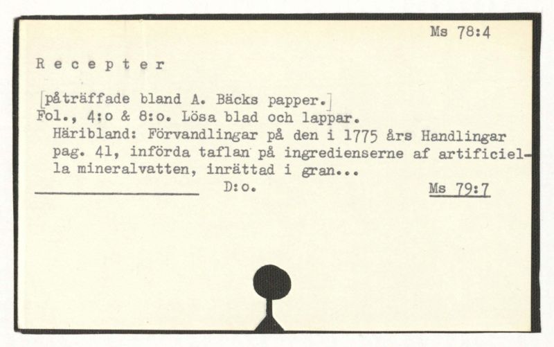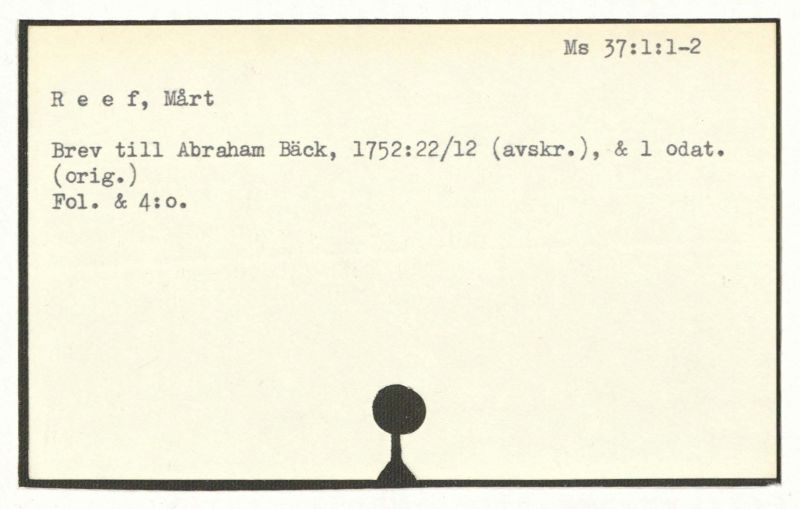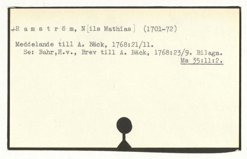 Se: Bahr,H.v., Brev till A. Bäck, 1768:23/9. Bilaga.