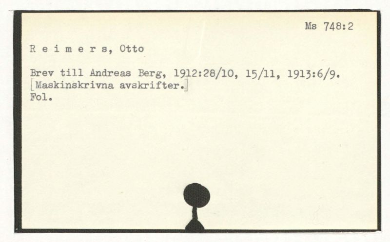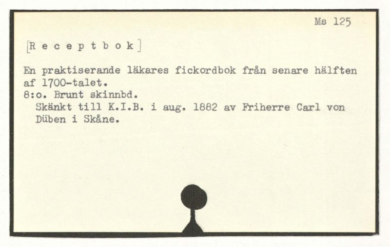 Skänkt till K.I.B. i aug. 1882 av Friherre Carl von Düben i Skåne.