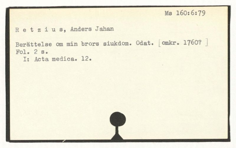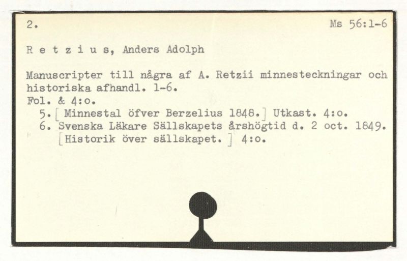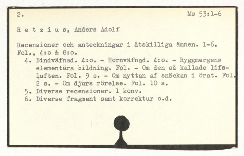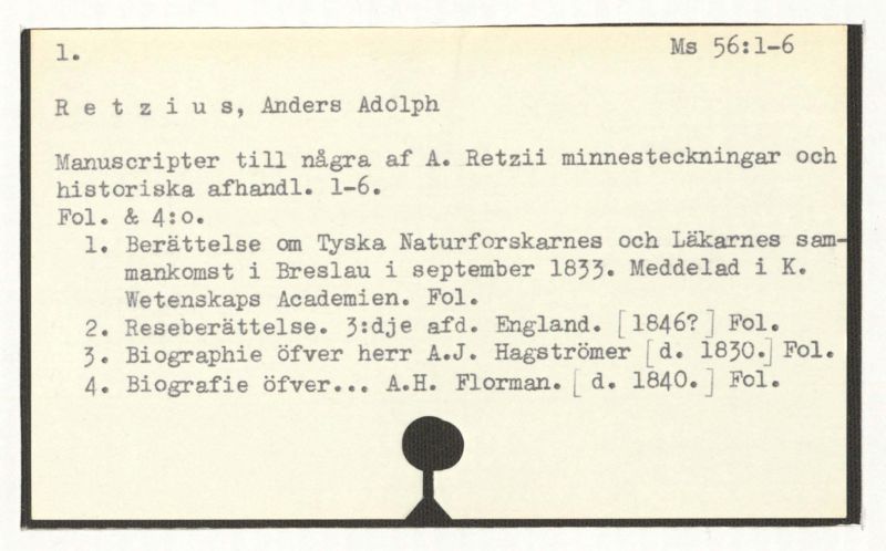 Manuscripter till några af A. RetziI minnesteckningar och historiska afhandl. 1-6.