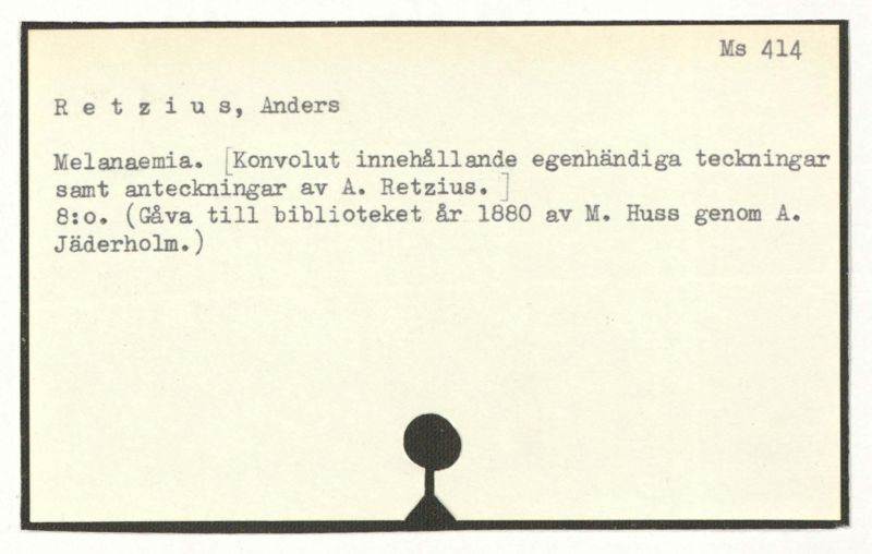 Melanaemia. [Konvolut innehållande egenhändiga teckningar samt anteckningar av A. Retzius.]