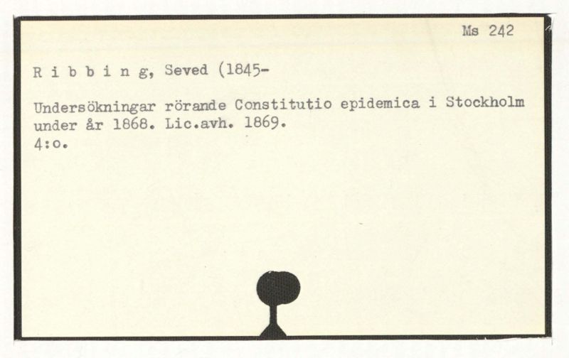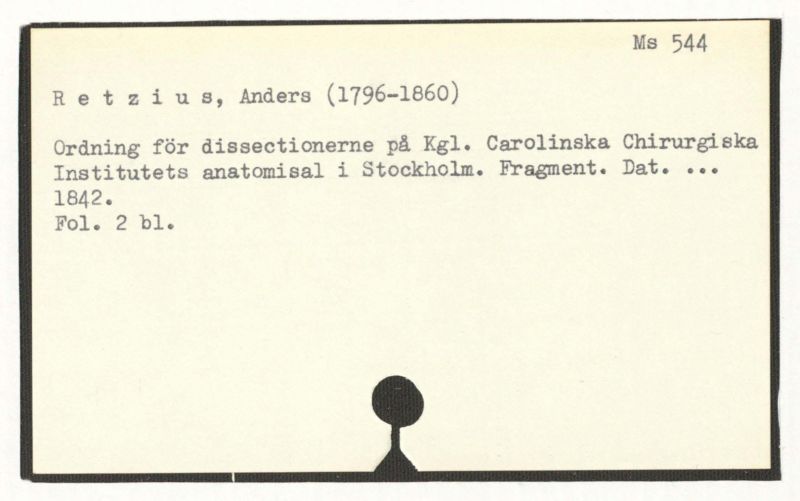 Ordning för dissectionerne på Kgl. Carolinska Chirurgiska Institutets anatomisal i Stockholm. Fragment. Dat. ... 1842.