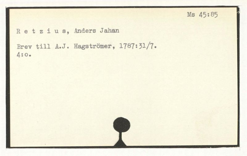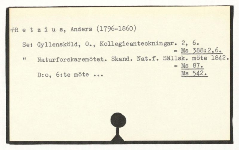 Manuscripter till några af A. Retzii minnestreckningar och historiska afhandl. 1-6.