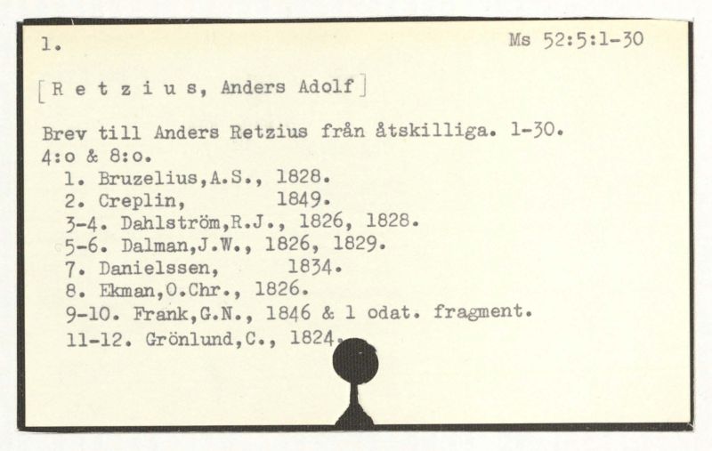 Brev till Anders Retzius från åtskilliga. 1-30.