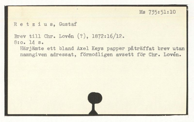 Härjämte ett bland Axel Keys papper påträffat brev utan namngiven adressat, förmodligen avsett för Chr. Lovén.