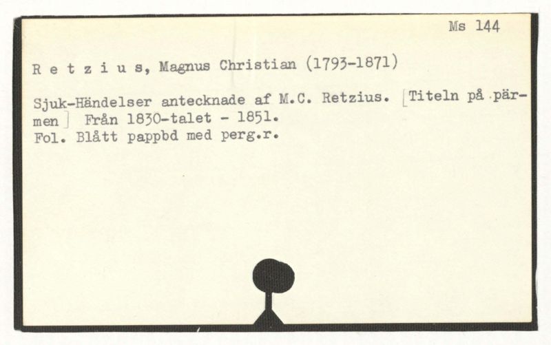 Sjuk-Händelser antecknade af M.C. Retzius. [Titeln på pärmen] Från 1830-talet – 1851.