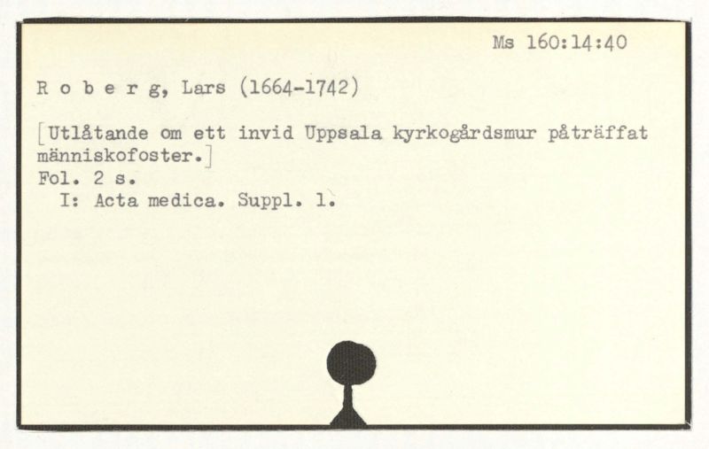 [Utålände om ett invid Uppsala kyrkogårdsmur påträffat människofoster.]
