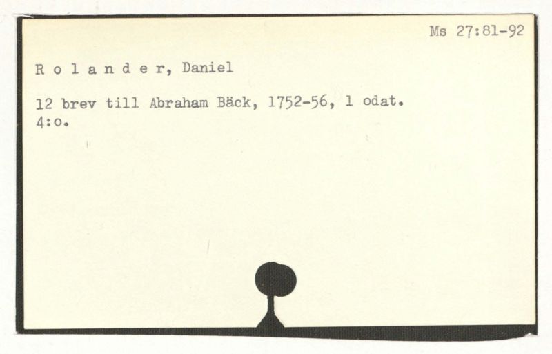 Brev till A. Bäck, 1763:27-28 sept., 1752:20/11, 1754:5/4.