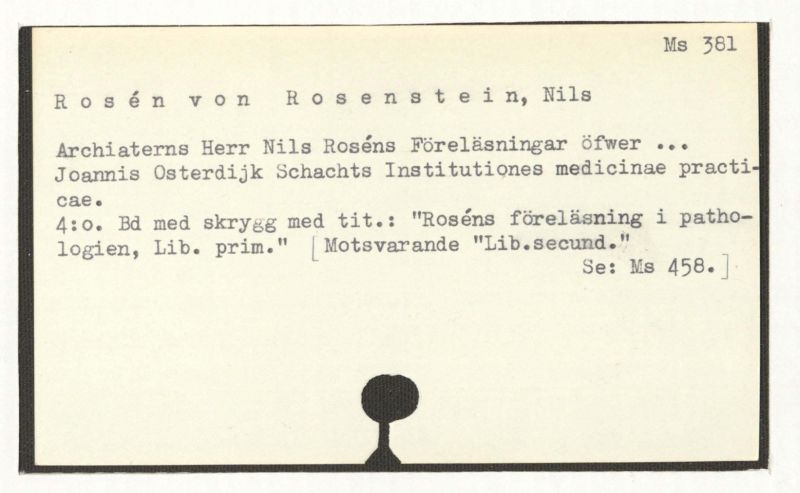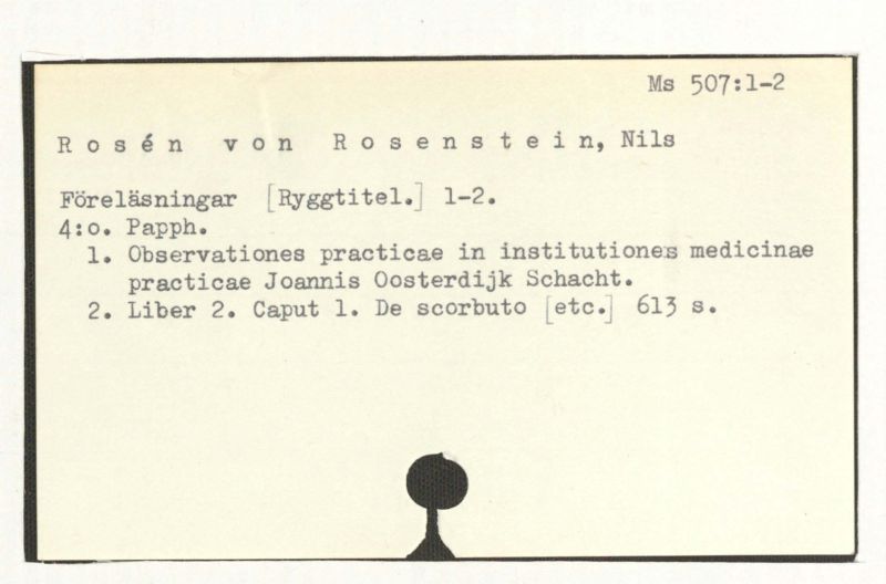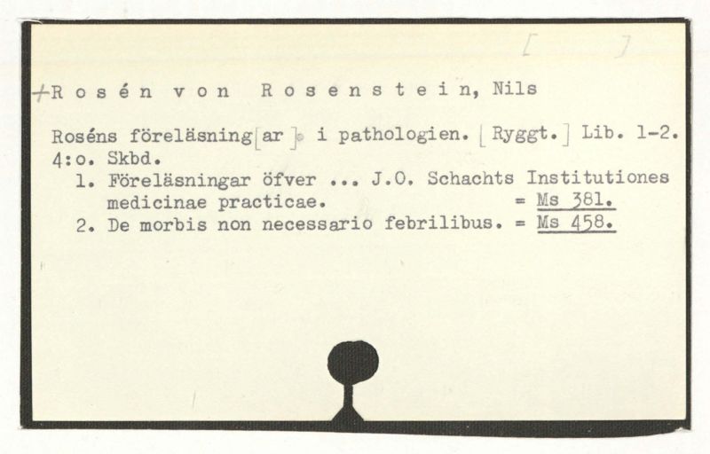 = Rosén von Rosenstein,N., Föreläsningar. 1. = Ms 507:1.