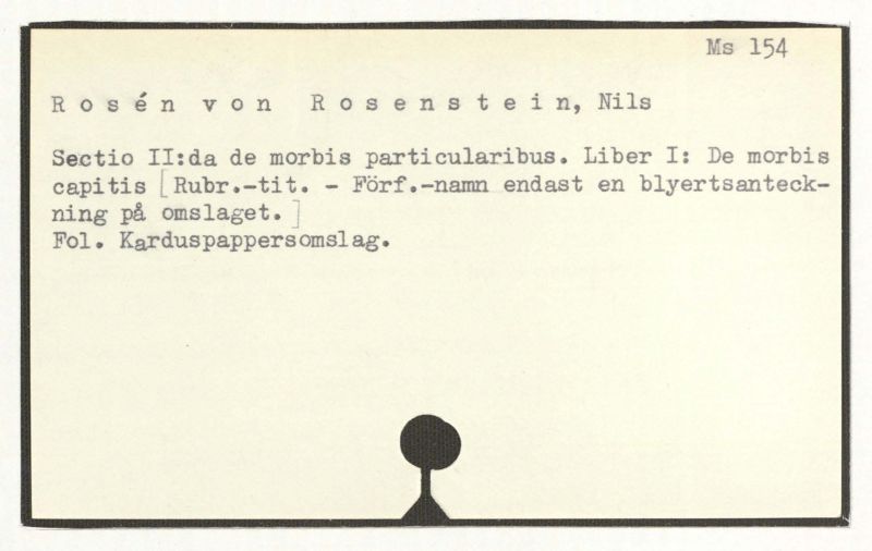 Sectio II:da de morbis particularibus. Liber I: De morbis capitis [Rubr.‐tit. – Förff.‐namn endast en blyertsantek-ning på omslaget.