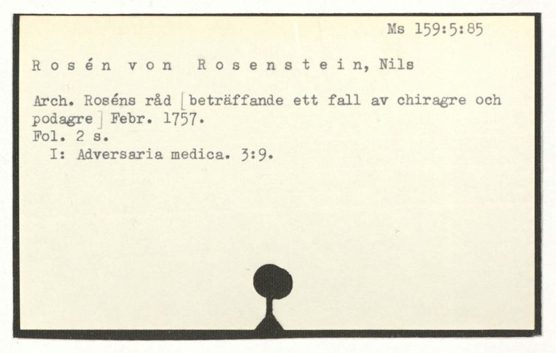 Arch. Roséns råd [beträffande ett fall av chiragre och podagre] Febr. 1757.