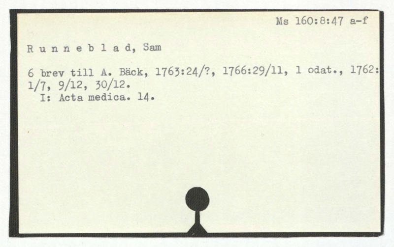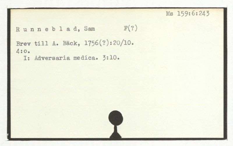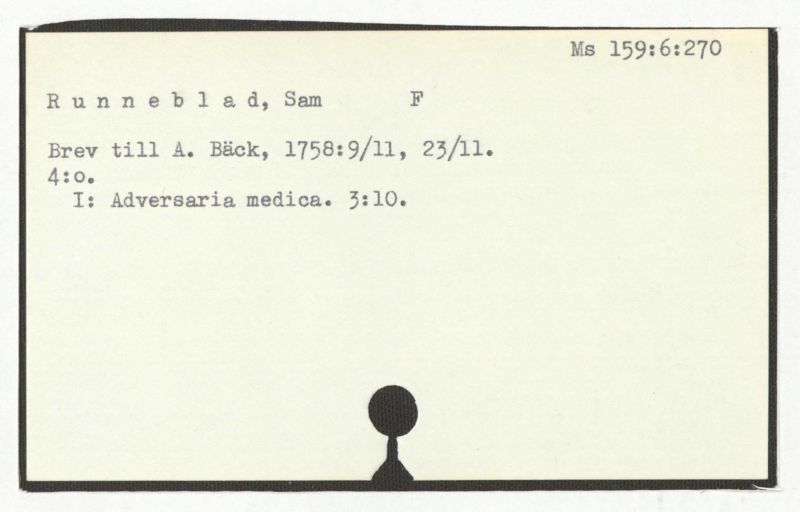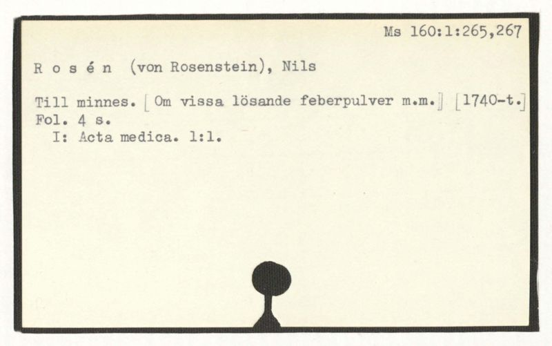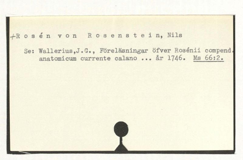 Se: Wallerius,J.G., Föreläsningar över Rosénii compend. anatomicum currente calano ... år 1746. Ms 66:2.