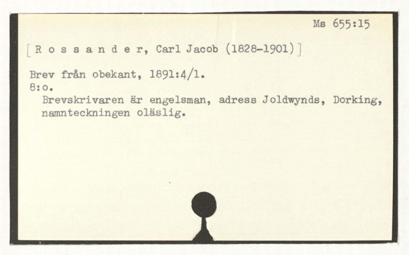 Brevskrivaren är engelsman, adress Joldwynds, Dorking,