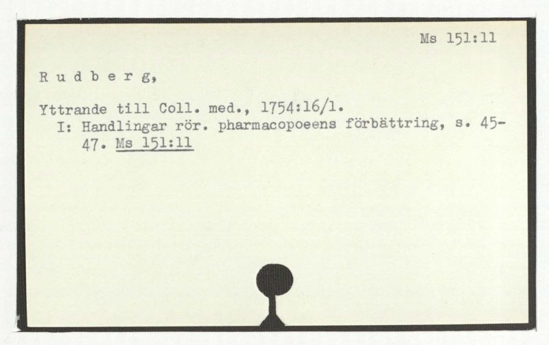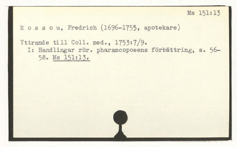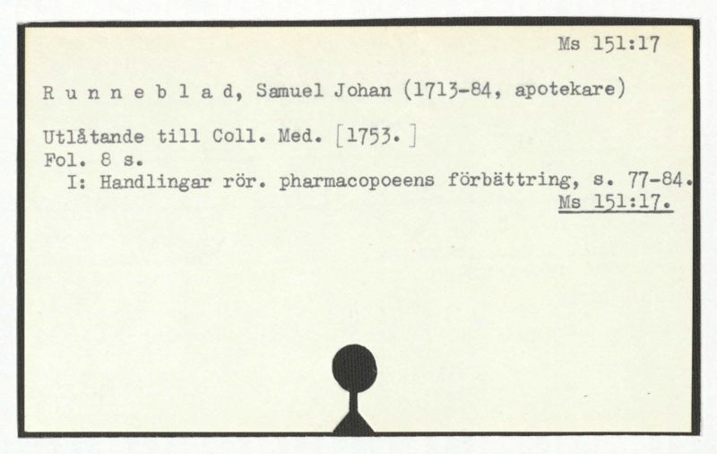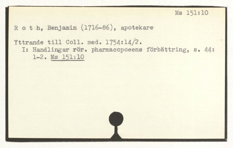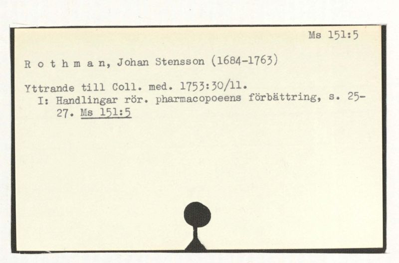 I: Handlingar rör. pharamcopoeens förbättring, s. 56-58. Ms 151:13.