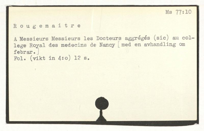 A Messieurs Messieurs les Docteurs agrégés (sic) au collège Royal des médecins de Nancy [med en avhandling om februar.]